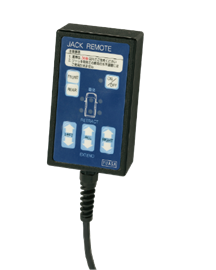 ジャッキーリフター用ジャッキ操作用リモコン。ON/OFF操作の他、左/右単独での伸長・収納、全体の伸長・収納ができます。