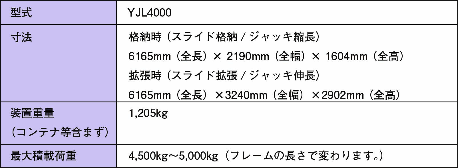 ジャッキは自立型で4箇所が独立して調整できますので、不整地であったとしても安定した接地と積み下ろしが可能です。