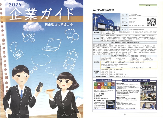 11月頃に県内の大学生に送られる岡山県立大学協力会企業ガイド2024年版にユアサ工機が掲載されます