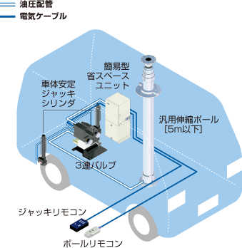 油圧駆動によるポール伸縮動作は静粛性が高く、夜間や室内での使用にも適しています。