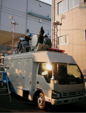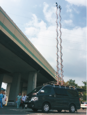 ユアサ工機の伸縮ポールシステムは、放送、通信、交通、消防、警察など公共性の高い分野で、災害基地局車や中継車などに使用されております。ユアサ工機の油圧式伸縮ポールシステムは高強度で耐振動性、耐風速性に優れ、高所でも正確な位置制御が可能です。災害、事故、非常時、緊急時、防災、防犯などの危機管理等、失敗の許されない場面において、空中高く取り付けたい機材を確実に迅速に正確な位置へと届けます。