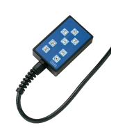 ポールの昇降・旋回俯仰装置の回転、LED照明の点灯/消灯を操作するためのリモコンです。遠隔からケーブルレスで操作可能です。