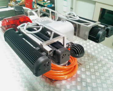LEDを使用することにより従来のランプに比べ消費電力を大幅に抑えることができるのと同時に高輝度照射も実現しています。また、高輝度HIDランプに比べても安定器等の機器が不要で省スペースです。