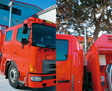 高強度のポールは耐振動性、耐風速性に優れ、油圧駆動方式により大型投光器を搭載した場合でも安定した昇降が可能です。ポールを含むシステム全体が軽量、コンパクトで狭い場所にも設置が可能です。